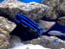 Wat voeding betreft is dit geen lastige eter, zolang de basis maar eiwitrijk is. In het meer zelf eet hij kleine ongewervelden en larven tussen de rotsen. In het aquarium pikt hij probleemloos hoogwaardig cichlidenvoer, diepvriesvarianten en soms levend voer mee. Het is slim om daar wat variatie in te brengen en geen overdreven hoeveelheden in één keer te voeren – hij eet gretig, maar te veel belast z’n spijsvertering. Bij een gezonde cichlide zoals deze zie je een mooie volle buik zonder bol te worden.