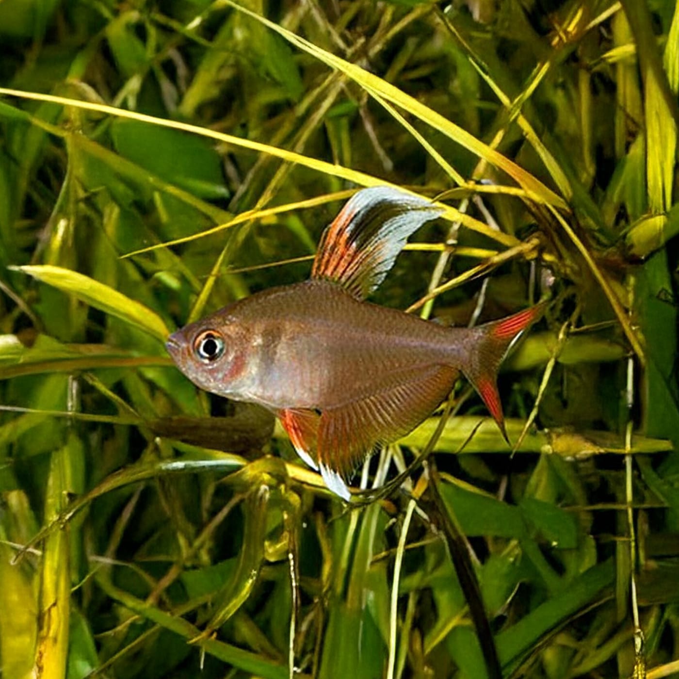 Toegevoegd aan een gezelschapsaquarium geeft de Hemigrammus erythrozonus balans. Niet alleen door zijn gedrag, maar ook door zijn kleur. Dat warme oranje vormt een natuurlijke overgang tussen groen blad, donkere achtergronden en andere vissen met koelere kleuren. Het is een toon die verbindt zonder dominant te zijn – een klein, vurig accent dat leven in de brouwerij brengt.